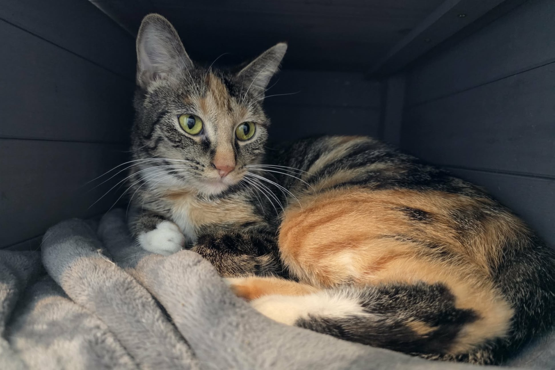 I came to Safe Haven with my three kittens: Bleu, Gouda, Pepper Jack. We love treats and cuddles, but I can be a little apprehensive when approached by new people. Once I warm up, I really want to cuddle with everyone! If interested in me, please fill out an appplication.