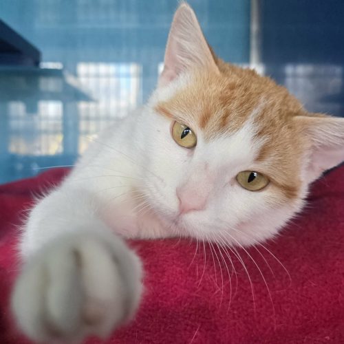 I had been living outside for sometime when someone found me and brought me to Safe Haven. I arrived ready for cuddles and playtime! I love toys, especially anything I can throw around that makes noise. Those little balls with bells in are my favorite, I could bat those around all day! When people come to visit I get so excited I trip over my feet trying to get to them, I want all the petting and attention.