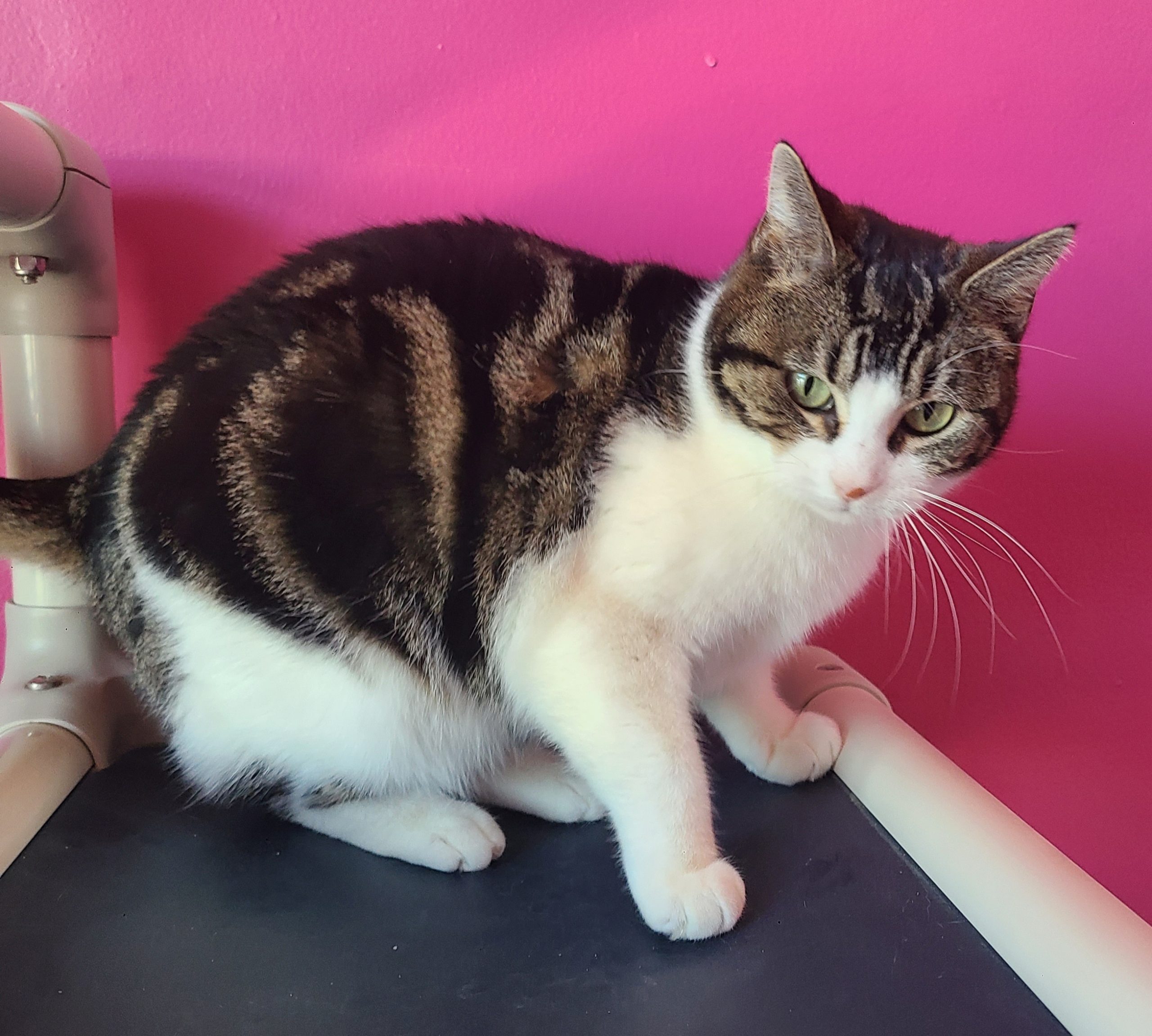 I am here at the shelter with my friend, Keely. I am timid when I meet new people, but I am becoming more friendly with the staff and volunteers. I like to sit in my window and talk to the humans who take care of me. I like to play with the teaser wand toys. I was an outside cat before coming to Safe Haven, so I am still getting used to indoor life and humans. I will need a very understanding person who will let me go at my own pace. If you are that someone special, please fill out an application for me. Thank you!