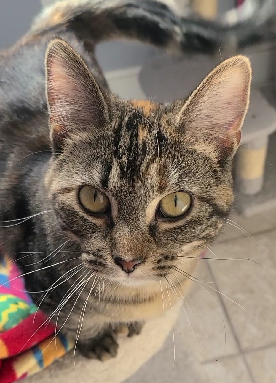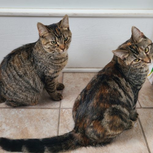 I am here at Safe Haven with my sister, Maggie. We are very playful and loving. I like gentle petting and slow movements when people come to visit. I really love to play with any toys that encourage my hunting skills. I feel most comfortable when I am with my sister. We are a bonded pair and are looking for a home where we will live the rest of our lives together. We are a great pair who have a lot of love to give. If we sound like we would fit in well in your home, please fill out an application for us.